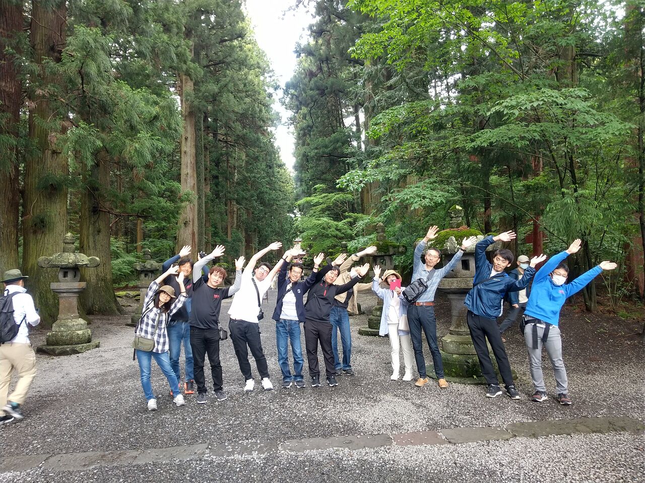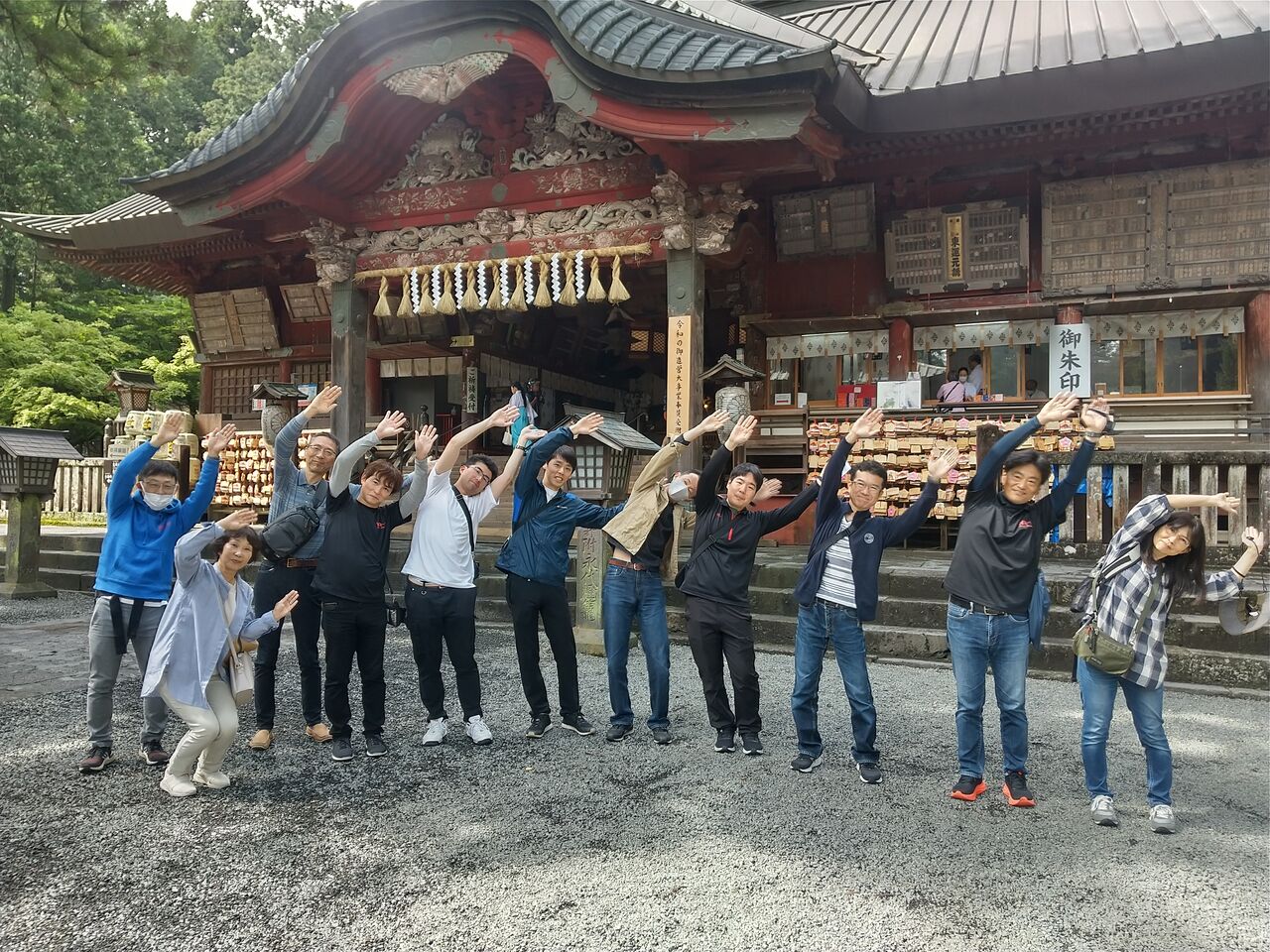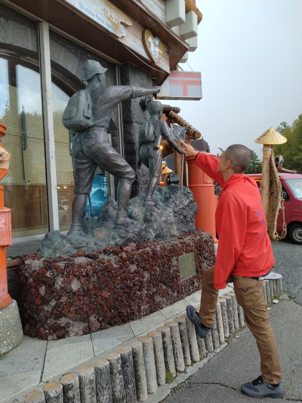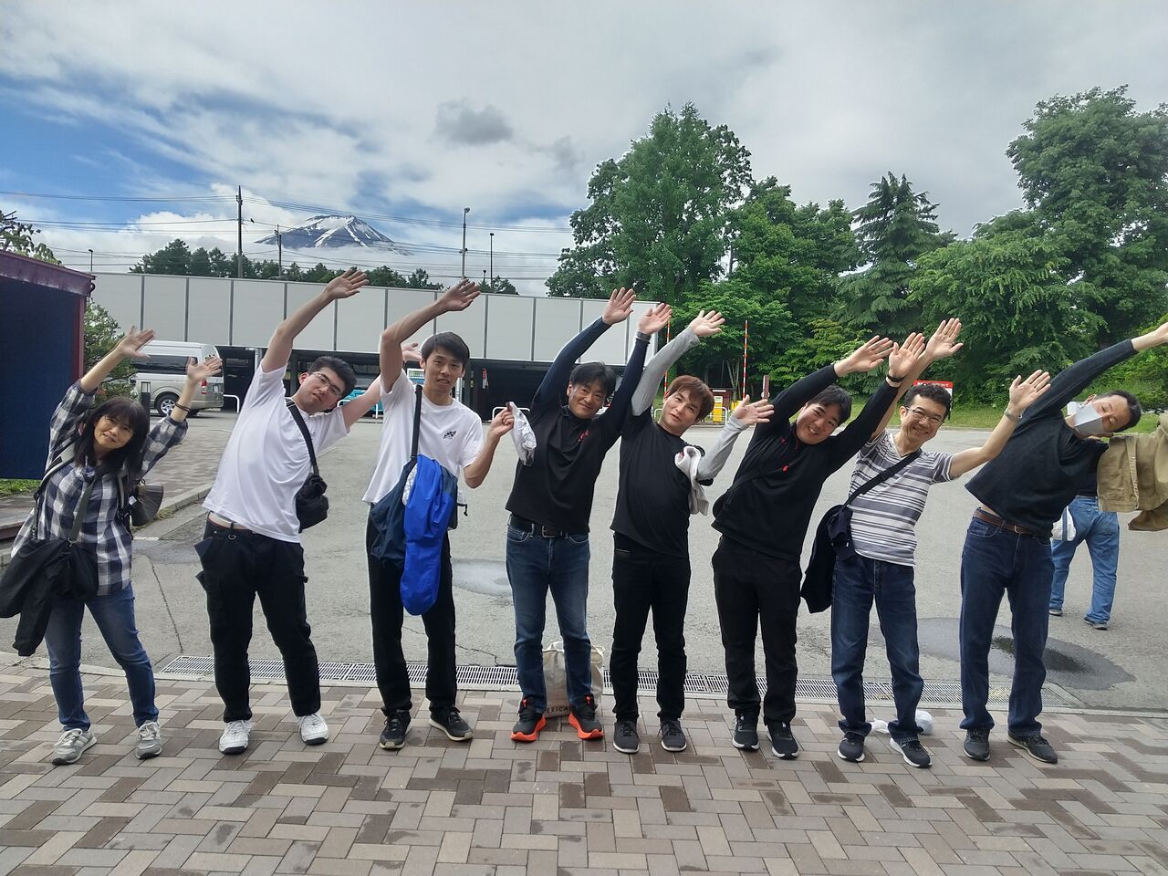 富士山北口浅間神社 第一駐車場に到着すると、先に到着した菅野さん、キョウコさんが手を振って待ってくれていた。