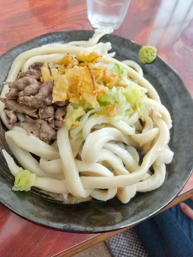 初日の昼食は、日本一硬いという吉田うどんの中でも最硬と言われている【手打ちうどんムサシ】へ。