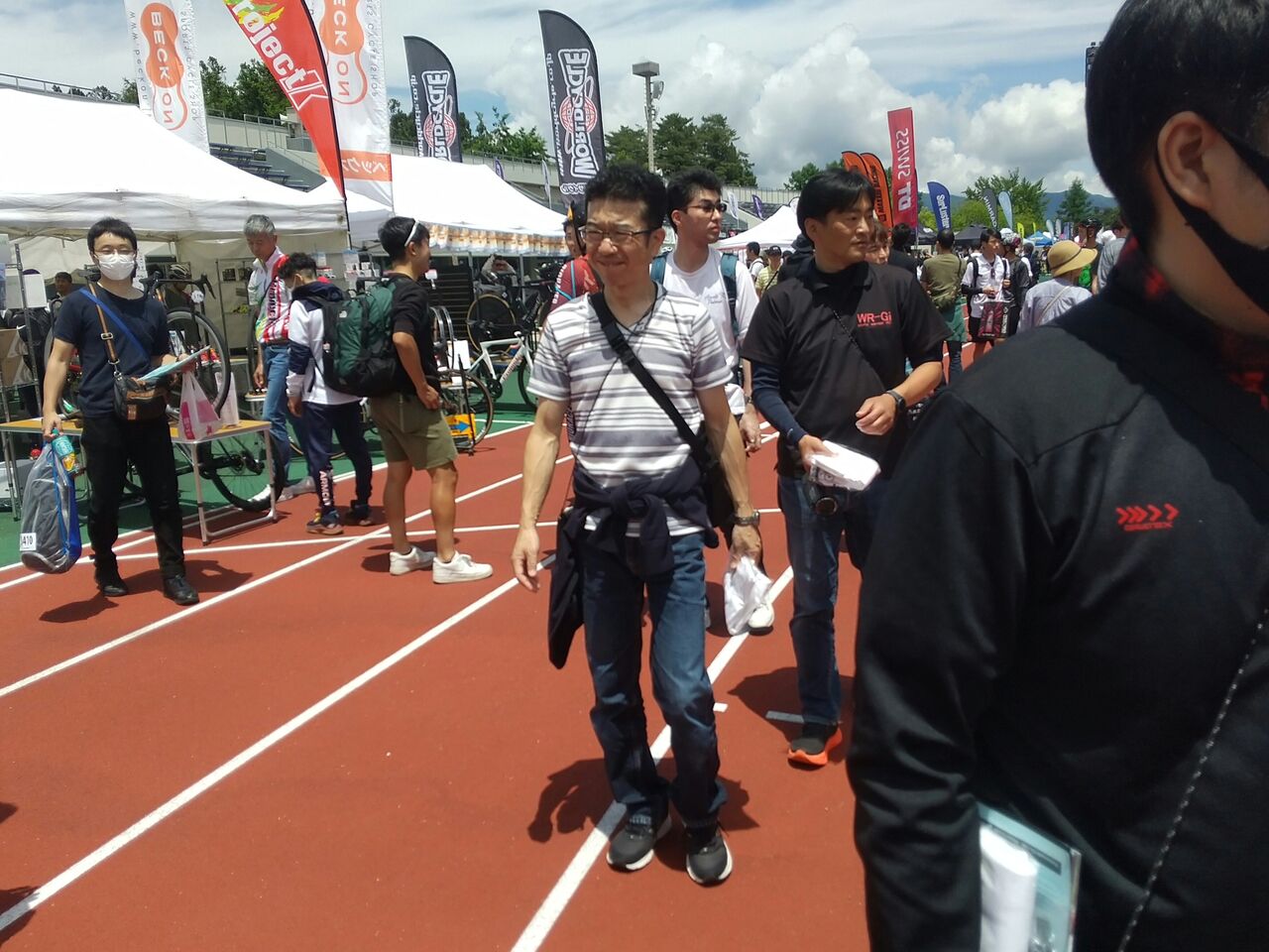 受付会場を探しながら中央広場に行くとサイクルエキスポという各メーカーが出店してるブースが凄い数で並んでいる。