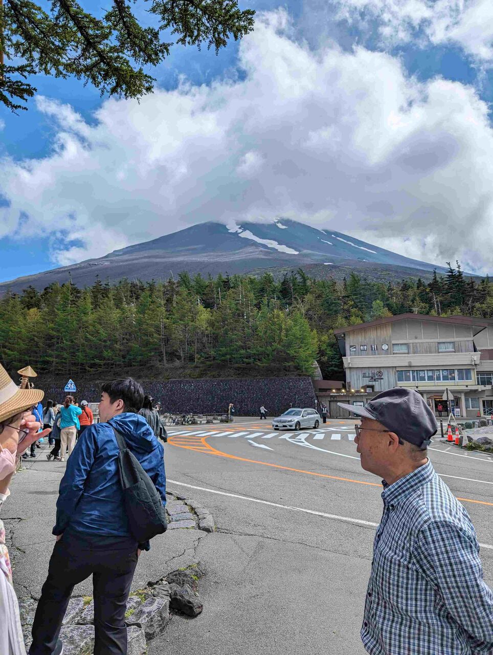5合目の駐車場に辿り着くと、富士山の山頂が目の前に見えている。
