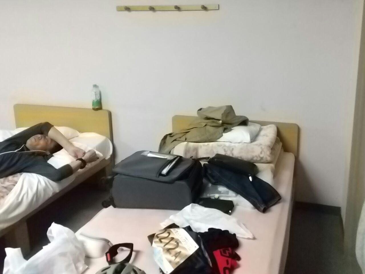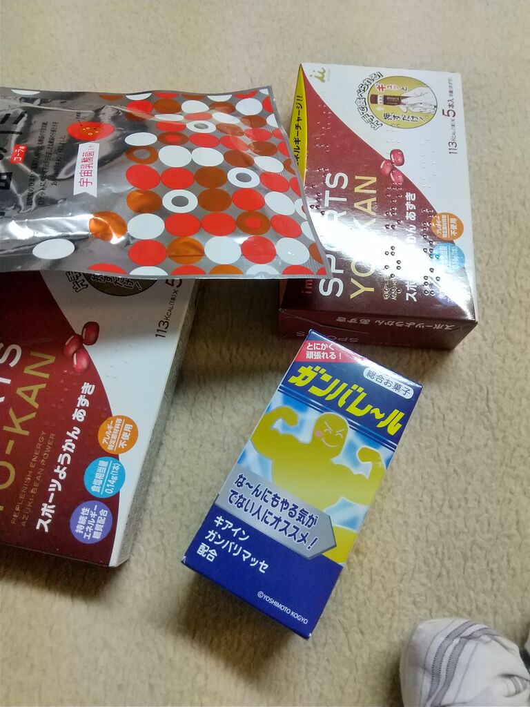 他の部屋に補給食を配りあるいて部屋に戻って布団に入るが、翌日の天気が心配すぎて気持ちが昂ぶってしまい寝れなそう。
