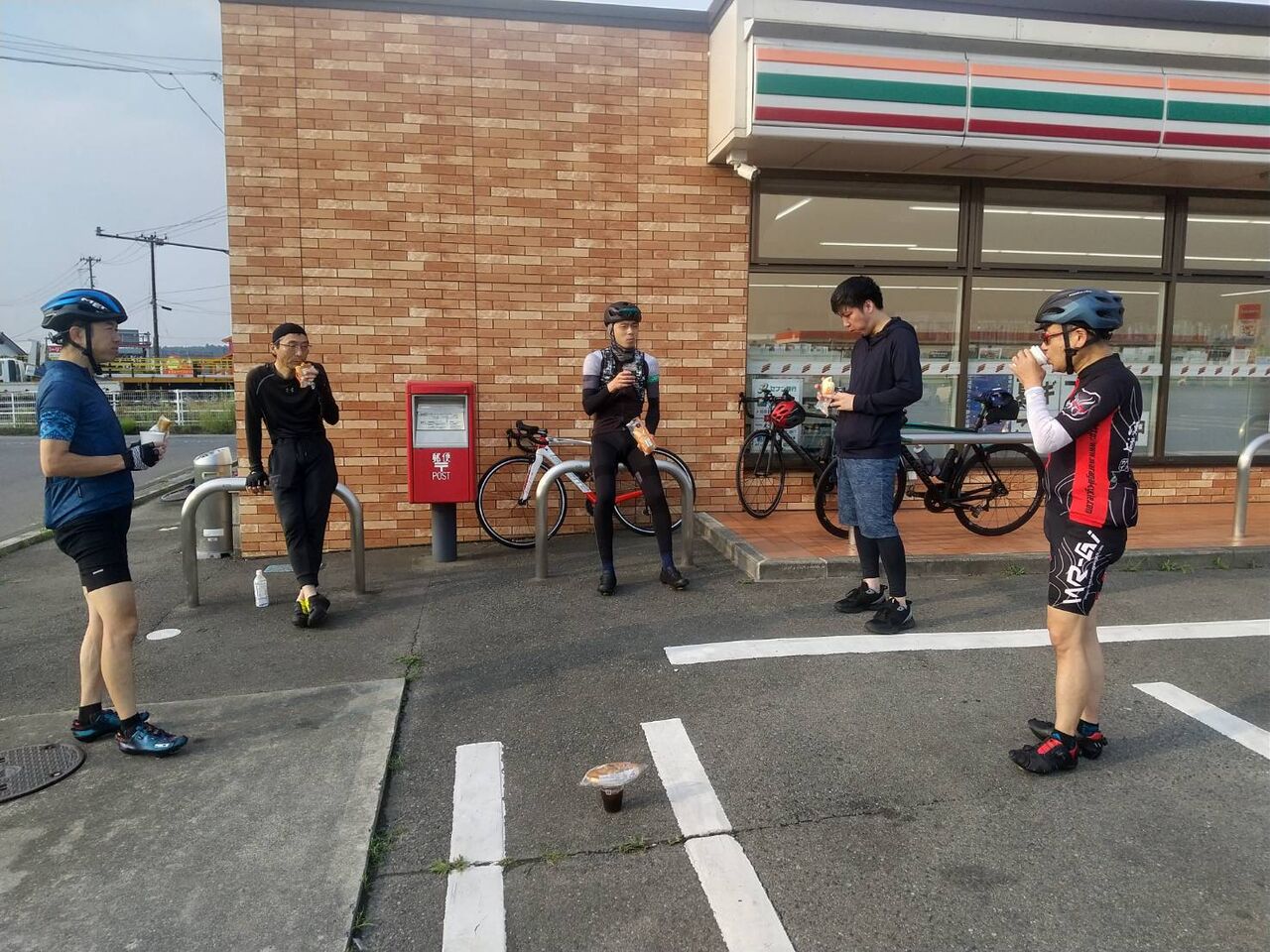 初心者サイクリングは、但野さん、若松さん、岩崎さん、菅野さん、そして初参加となる中井田さんで出発。AV20kmを意識しながらのサイクリング。