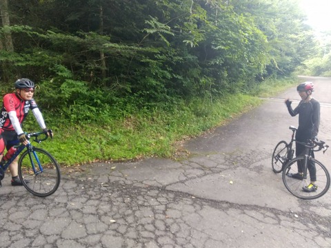 若松さん、菅野さんと出発。朝から灼熱な気温であるが旗巻峠という避暑地で涼をとることに。