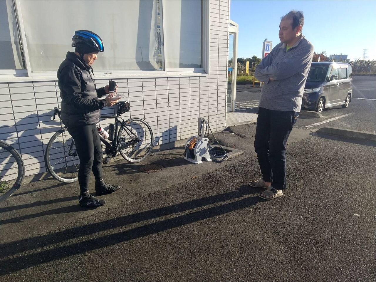 昨晩は風がビュービューふいていたので今日は中止かなぁ~と思っていたが、朝起きてみると大丈夫。とは言っても、まぁまぁ風はあるので自転車乗ってるとキツイだろう。