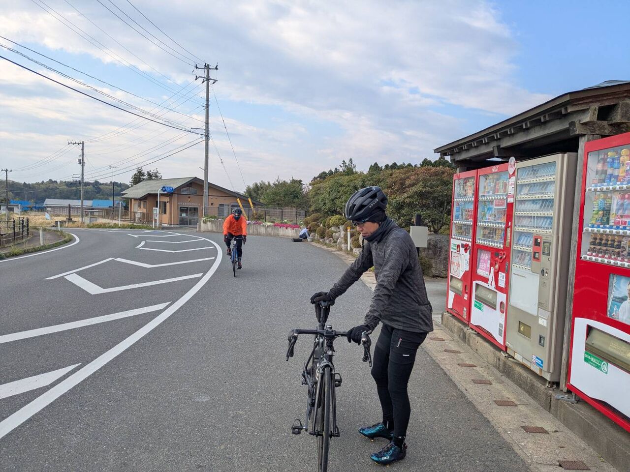 帰りは昨日の落車現場を見ながらドイソンでコーヒー休憩。朝練部、最高~~
